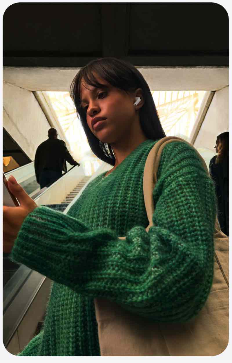 Adaptieve EQ stemt de muziek in real time af op je oren en baseert zich op de pasvorm van je AirPods. De microfoons aan de binnenkant meten wat je hoort en passen de lage tot hoge frequenties aan. Dus naar welke muziek je ook luistert, je hoort altijd ongelofelijk veel details.
