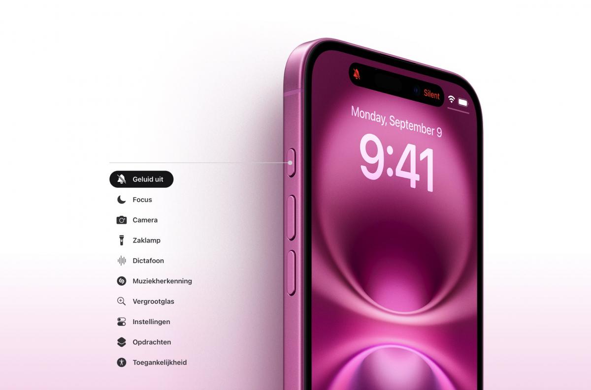 Met de actieknop op iPhone 16 ga je direct naar je favoriete feature. Wil je de zaklamp of de Dictafoon gebruiken, of het geluid uitzetten? Houd de actieknop ingedrukt en je hebt meteen alles in de hand. Je kunt ook Opdrachten instellen om een app te openen, een reeks taken uit te voeren of van actie te wisselen op basis van locatie en tijd. En ook in apps kun je er van alles mee doen, zoals een alarm instellen of je favoriete drankje bestellen.