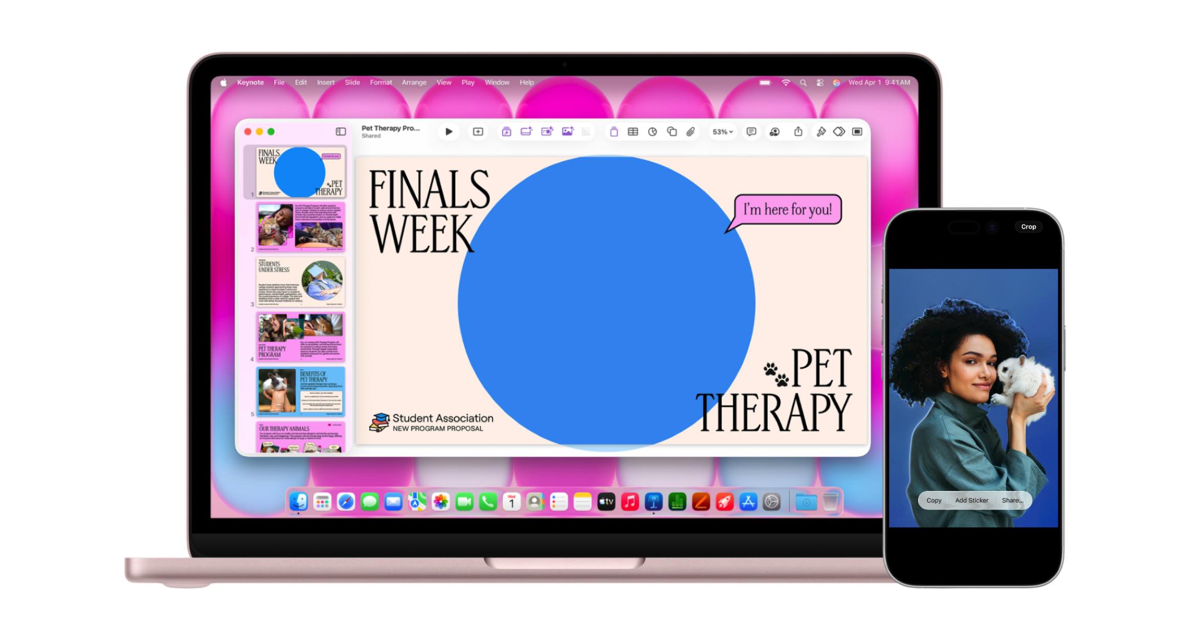 Mac en iPhone zijn al geweldig op zichzelf. Maar als je ze samen gebruikt, gaat er een wereld aan geweldige features voor je open. Begin aan een e‑mail op je iPhone en maak die af op je Mac. Kopieer iets op het ene device en plak het op het andere. En je kunt je iPhone zelfs als hotspot voor je Mac gebruiken. Het is gewoon een magisch duo.