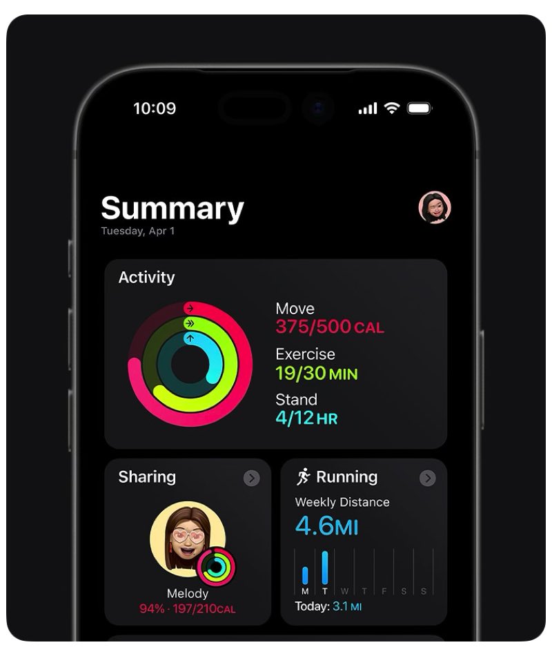 Wind de Activiteit-ringen om je vinger. Bewegen. Trainen. Staan. De Activiteit-app kan bijhouden hoeveel je dagelijks beweegt. Je kunt heel eenvoudig je Activiteit-ringen op pauze zetten of je doelen per dag van de week instellen.