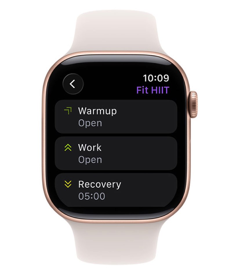 Stel je eigen work‑out samen. Je training finetunen kan zowel op Apple Watch als op iPhone. Even je doelen aanpassen voor tijd, afstand of het aantal calorieën, en klaar. Je kiest zelf of je meldingen wilt ontvangen voor tempo, hartslag, vermogen en cadans.