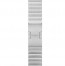 De schakelarmband - vervaardigd van roestvrij staal (316L) - bestaat uit meer dan honderd losse onderdelen. Het fabricageproces is zo nauwkeurig dat het bijna negen uur duurt om de onderdelen voor één enkel bandje te vervaardigen. Dat komt onder meer doordat de schakels niet simpelweg één formaat hebben: naarmate ze zich dichter bij de kast bevinden, worden ze op subtiele wijze breder. Zodra ze gemonteerd zijn, worden de schakels met de hand geborsteld om ervoor te zorgen dat ze de contouren van het ontwerp volgen. De speciaal ontworpen vlindersluiting past naadloos binnen het geheel. Verschillende schakels zijn voorzien van een eenvoudige verstelknop, zodat je zonder extra gereedschap moeiteloos schakels kunt toevoegen of verwijderen.