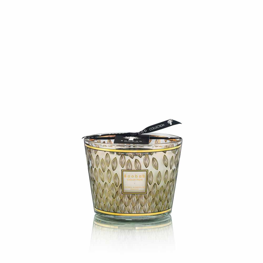 De geurkaars Perou is een eerbetoon aan de criollo-bonen die exclusief in Peru worden geoogst en herkenbaar zijn aan hun unieke witheid, waardoor de donkere chocolade uit Peru eruitziet als melkchocolade. Een regen van witte en gouden bonenpatronen dwarrelt neer op het glas. Bij het branden behoudt de geur al haar frisheid van limoen en komt het vetiverhout naar voren. Een geur van jasmijn zorgt voor een aromatisch effect.