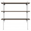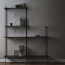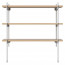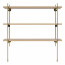 De legplanken en kasten zijn gemaakt uit geolied fineer en worden gecombineerd met een zwart gepoedercoat staal of gelakt messing frame.