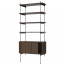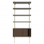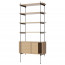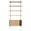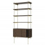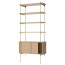 De legplanken en kasten zijn gemaakt uit geolied fineer en worden gecombineerd met een zwart gepoedercoat staal of gelakt messing frame.