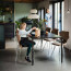 De Cavalletta stoelen van het Nederlands designlabel Design on Stock zijn verkrijgbaar in een waaier van stof- en ledersoorten.Ook het onderstel is aanpasbaar in aluminium, onyx, dark en coal.