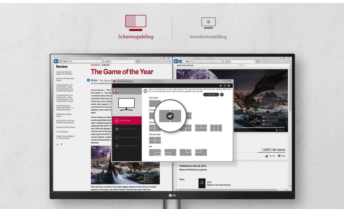 OnScreen Control is eenvoudig en intuïtief. Controleer je weergave-opties, schermopdeling en monitorinstellingen met een paar muisklikken.