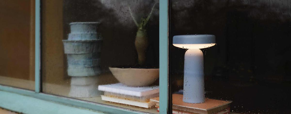 De Ease draagbare lamp is geschikt voor buitengebruik dankzij de IP54-classificatie. De lamp is beschermd en getest tegen vaste vreemde voorwerpen, zoals stof, en tegen vloeistoffen, zoals opspattend water vanuit alle hoeken.