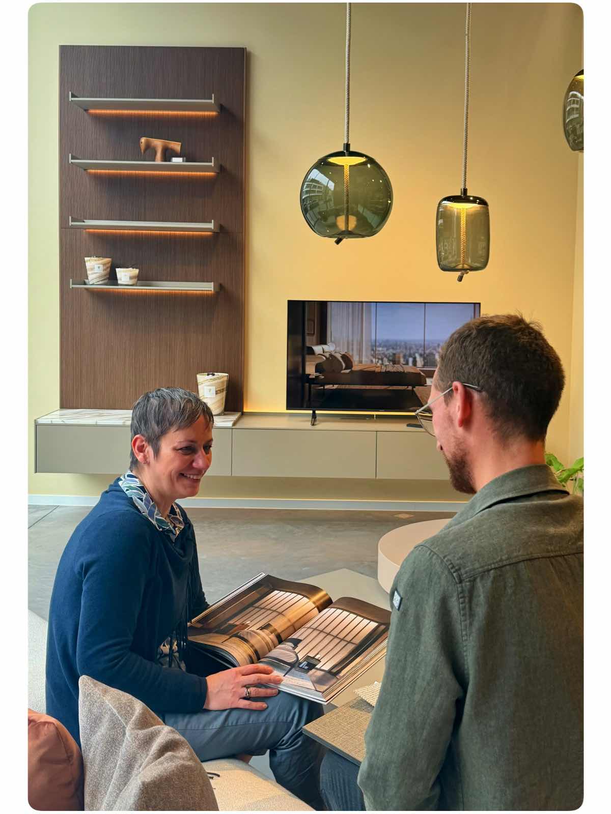 We inspireren je met warme settings, adembenemende moodboards en 3D-tekeningen. En we helpen je bij je materiaalkeuze, geven je kleur- en lichtadvies en maken professionele technische plannen.