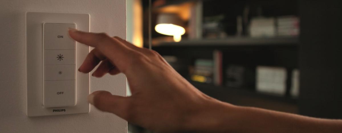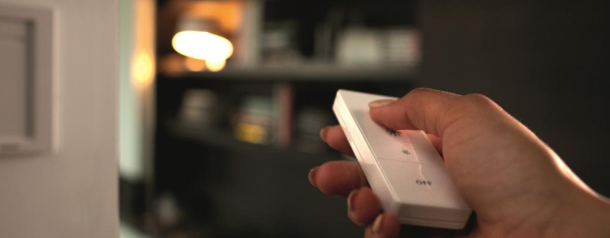 Met de draadloze dimschakelaar kan je je Philips Hue lampen eenvoudig dimmen. Niet te licht, niet te donker maar precies goed. Er komen geen kabels of stopcontacten aan te pas. En ook geen elektricien. De schakelaar werkt op batterijen.