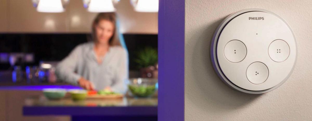 Met de Philips Hue Tap kan je je Philips hue-verlichting draadloos bedienen vanuit elke kamer in huis.
