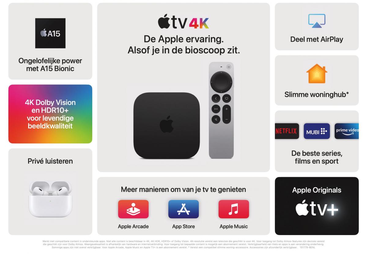 Bekijk bekroonde Apple Originals-series en ‑films, andere favorieten op Netflix, Disney+, Amazon Prime Video, MUBI en iTunes en nog veel meer. Speel superleuke games en ontdek muziek zoals dat alleen bij Apple kan. En kies uit duizenden briljante apps in de App Store. Op Apple TV 4K vind je meer dan alleen tv.
