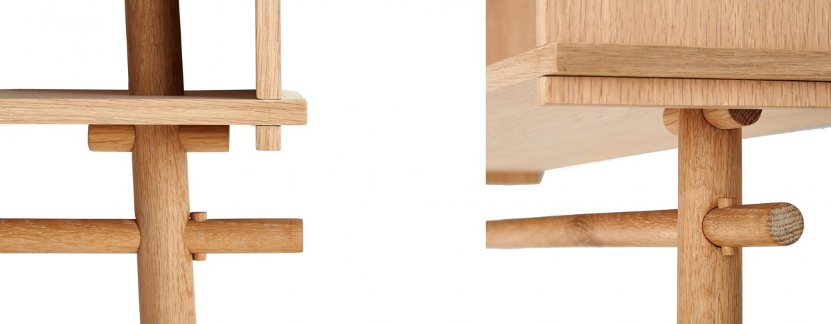 Wie in de Töjbox op zoek gaat naar schroeven, spijkers of lijm om de constructie stevig bij elkaar te houden, komt bedrogen uit. Ze zijn er simpelweg niet. De Töjbox is voor 100% gemaakt uit hout, met een onderstel in gezeept massief eikenhout en een opbergvak in eikfineer.