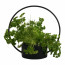 Een ronde, gelakte metalen schaal staat in verbinding met een eenvoudige ring. Binnenin het schaaltje zit een glazen bowl.